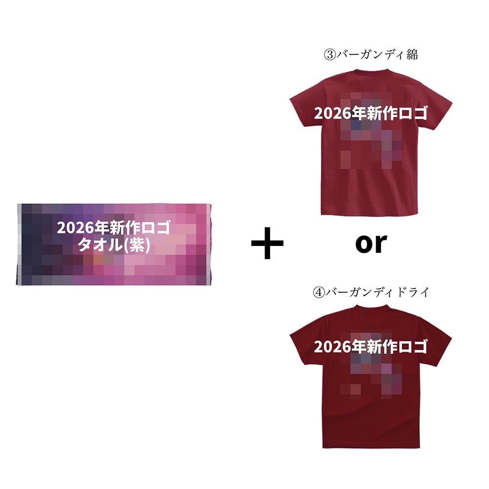 【賛助会員向け】2026年新作ロゴタオル+Tシャツ(バーガンディ)1枚セット